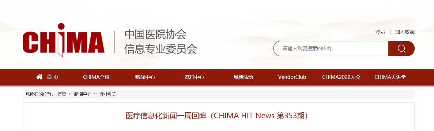 醫(yī)療信息化新聞一周回眸(CHIMA HIT News 第353期)